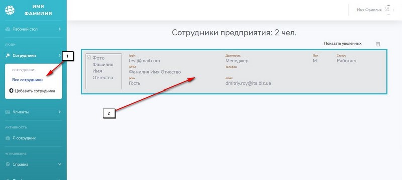 Редактировать сотрудника можно перейдя в его профиль. Для этого надо отобразить список сотрудников, и на нужном кликнуть мышкой.