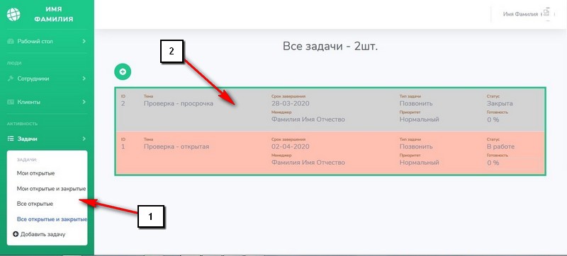 Следует отметить, что просроченные задачи выделяются красным цветом, а закрытые темно-серым.